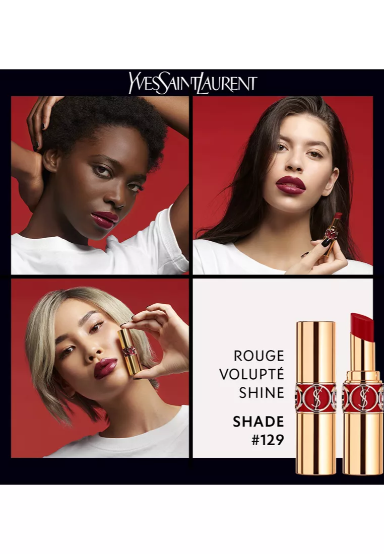 YSL Rouge Volupte Shine in 129 Carmine Retro (3.2g)