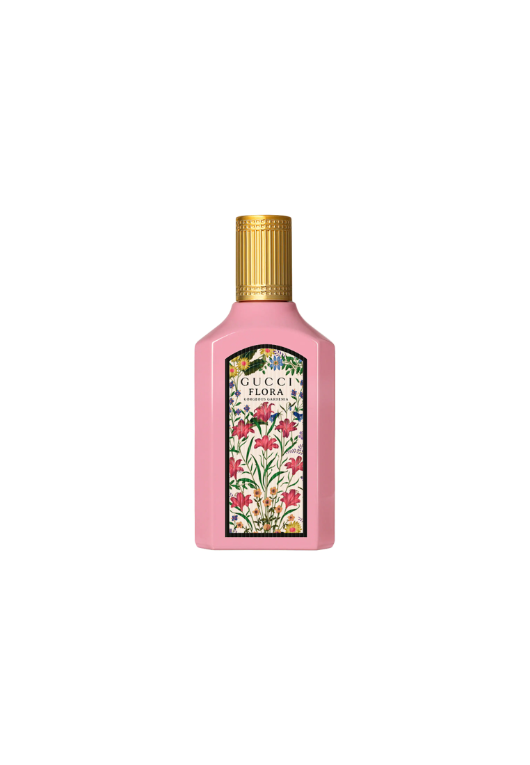 - About the Bottle: Encased within a new, elongated bottle, the lacquered pink glass and shiny gold cap make it an object of beauty. A notable addition is the distinctive Flora pattern, re-imagined with a design inspired by Alessandro Michele's vision. A core part of the Gucci identity, the motif is a painting of colorful flowers by artist Vittorio Accornero, created for Gucci in 1966.
